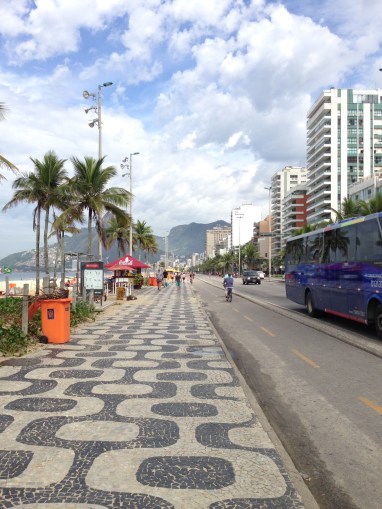 Sidewalk along Ipanema. Copacabana has a different pattern on the sidewalk.