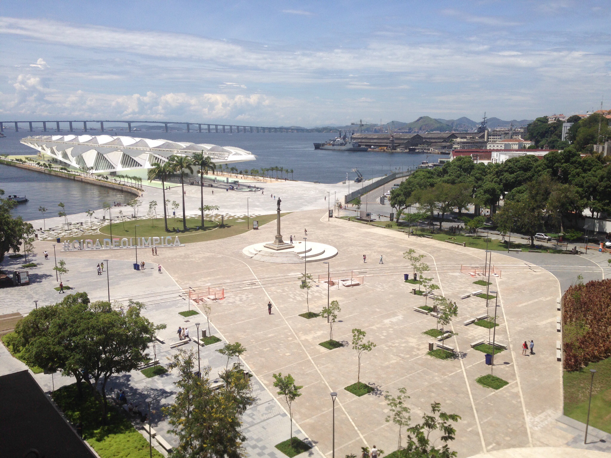 The white structure houses the Museu do Amanhã. Photo taken from the restaurant patio at the Museu de Arte do Rio.